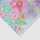 Este lenço apresenta um impressão floral cativante que desenhar instantaneamente o olho. Uma sinfonia de flores florescentes em tons radiantes de rosa, roxo e laranja graciosamente dançando pela superfície, cada pétala e folha meticulosamente detalhados para exudir um senso de vivacidade. As intrincadas espirais e as elegantes florescimentos entrelaçados entre as flores acrescentam um elemento de chorona, fazer cada olhar neste papel de tecido uma experiência visual deliciosa. Entre as flores, encontram-se folhas verdes e videiras que contrastam com as cores vibrantes das flores. O fundo é azul claro, o que faz o impressão colorido se destacar de forma destacada. O design geral é intrincado mas não esmagador, oferecendo um apelo visual equilibrado.