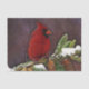 Uma imagem bonita de um cardeal masculino brilhante vermelho em uma neve espanou o ramo do pinho completo com os pinecones. Aperfeiçoe para sentimentos do Natal, ou todo o outro feriado de inverno!