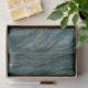 Papel De Seda Casamento Abstrato em Azul Tranquilo Dourado Aquar