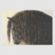 Cavalo Negro da Frísia com um homem longo e ondulado mostrando os realces amarelos quentes do sol da tarde.