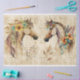 Este lindo desenho de papel de seda para decoupage apresenta um par de cavalos, uma égua e seu parceiro, adornados com flores e penas boho, sobre um fundo de efêmeros vintage. Este desenho foi criado para o tamanho grande de papel de seda da Zazzle, 20" x 30". Se você planeja usar este desenho para projetos de decoupage, você pode deixar os dois cavalos como estão, em uma folha. Ou, você pode cortar o papel ao meio verticalmente, dividindo essencialmente os dois cavalos em suas respectivas folhas, resultando em um tamanho aproximado de 20" x 15" por folha.