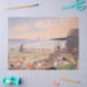 Esta design apresenta uma pintura do artista americano William James Glackens (1870-1938). Mostra um grupo de pessoas aproveitando um dia quente de verão em uma praia em Nova Inglaterra, EUA. Há um prédio de madeira que fornece abrigo na praia. Há também um jato de madeira na água. Muitas famílias e crianças estão sentadas na praia, relaxando no belo sol. Outras pessoas estão nadando na água. Há alguns barcos à vela no mar também. A arte original foi pintada em 1913.