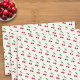 Um papel tecidular adornada com um padrão de cerejas e suas folhas verdes sobre fundo bege claro. Uma maneira adorável de enrolar um presente, perfeito para crianças ou qualquer um que ama frutas doces!