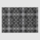 Christmas trees and black plaid tissue paper. Black trees make a pattern over plaid in neutral shades of gray. Tissue paper comes in more sizes.