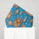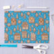 Padrão vetorial desenhado à mão com várias casas de pão de gengibre, árvores de abeto, flocos de neve e biscoitos crescentenários em azul com neve caindo