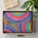 Este papel tem um teste padrão circular do estilo brilhante da tintura do laço em um arco-íris das cores que incluem vermelho, cor-de-rosa, verde, azul, roxo, da laranja e do amarelo.