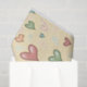 Corações bonitos, divertidos, com espirais encaracolados para presentes ou chás de fraldas recém-nascidos. Corações coloridos neutros são laranja, vermelho, azul e verde em um fundo amarelo pálido.
