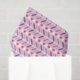 Corações e papel tecidular em cores vermelha, rosa e roxa. Padrão de faixas horizontais.