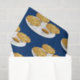 Lenço de papel com um teste padrão de repetição de três latkes de sorriso em uma placa com molho e creme de leite de maçã.