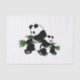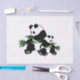 Panda mama senta-se comendo bambu enquanto o bebê faz como o bebê panda vê