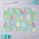 Featuring a seamless pattern of hand-painted bunnies, colorful patterned eggs, and yellow spring flowers on a soft sage green background, this decorative paper adds a whimsical touch to any gift box or gift bag. The delicate pastel color palette and artistic watercolor textures make it a perfect choice for Easter baskets, spring birthdays, or baby showers.
