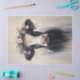 Papel de tecido de dissociação com uma vaca leiteira fofa vestindo uma coroa de flores roxas. Perfeito para projetos de dissociação de estilo rústico.
