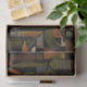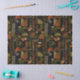 Sophisticated mid-century geometric pattern tissue paper featuring layered circles, arches, triangles, and rectangles in forest green, burnt orange, ochre, and cream on a black background. Rich textures and retro-modern shapes create a bold design ideal for Bauhaus lovers, vintage décor fans, and anyone drawn to moody modern style.