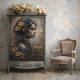 Transforme seu projeto com a Decoupage Azul Dourada Floral do Autumn Enchantress por Decoupage_Boutique. Um retrato caprichoso de uma jovem coroada nos florescentes do outono e nos ouros botânicos traz elegância, mistério e encanto de fantasia para qualquer peça. Ideal para decoração romântica, de conto de fadas ou de temas florais. Perfeito para: Antecipas de secretária Antigas mesas de vaidade Vitorianas Caixas de joias de Vintage Armoires mesas laterais Pares de cor: Marinho + Creme Dourado Anterior + Sepia Amber + Meia-Noite Pearl + Cinza de Tempestade de Bronze + Impacto Design de Gilt: Composição de retrato Dramático Botânica de ouro Moody Chiaroscuro Iluminação Renascença Elementos de fusão Asiáticos Contemporâneos