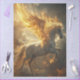 Pegasus decoupage paper, fiery winged horse artwork, celestial fantasy panel, golden light mixed media design, mythical creature for DIY projects, RHDesigns decoupage, dramatic cloud background, ethereal flying horse art, magical furniture art, surreal equine decor, handcrafted fantasy paper, layered mystical imagery, radiant spark wings, white Pegasus in motion, inspirational art for creative makers, fantasy-themed crafting paper, divine energy artwork, storytelling panel for mixed media, whimsical horse design for decoupage.