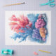 Esta design de dissociação captura a beleza vibrante de um recife de coral submarino, pintado num estilo aquoso macio, mas colorido. As pinceladas fluidas e as matizes marinhas ricas criam uma estética serena e encantadora inspirada no oceano, perfeita para artesanatos e decoração.