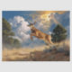 Uma pintura dinâmica de um giz de cervo de cauda branca saltando por uma paisagem cênica, perfeita para entusiastas da vida selvagem, projetos de decoração rústica ou desacoplamento inspirado na natureza.