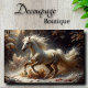 Entra num conto de fadas com este tecido de desacoplamento, enraizado em ouro, de Decoupage_Boutique, apresentando um poderoso garanhão branco, listrado com luz quente e sotaque dourado, enquanto carrega através de uma floresta sonhadora coberta de neve. Rico com detalhes e cheio de energia real, este design é perfeito para móveis de luxo, decoração inspirada em fantasia, ou qualquer projeto que exija beleza, movimento e um toque do mítico.