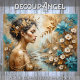 essa design apresenta o perfil de uma bela mulher, com ouro intrincado e flores e folhas azuis, numa composição luxuosa e refinada. Escolha o tamanho que ajustado sua visão ou entre em contato conosco para obter um design personalizado feito especificamente para você. Se você for proprietário ou revendedor do compro, envie uma mensagem no Zazzle ou conecte-se através da nossa página do Facebook DecoupAngel para explorar oportunidades de colaboração interessantes com benefícios exclusivos, adaptados a você