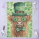 Um design de decoupage divertido para o Dia de São Patrício, apresentando uma encantadora vaca das Highlands vestida com um estilo irlandês festivo. Com seu alto chapéu verde, óculos de trevo, gravata borboleta e um caule de trevo enfiado entre os lábios, este design combina a personalidade rústica de uma casa de fazenda com a alegria brilhante do feriado. O fundo em camadas de trevo adiciona profundidade e movimento, tornando-o perfeito para acessórios de móveis, arte de mídia mista, decoração sazonal e projetos de artesanato caprichosos. Os detalhes nítidos e os verdes ousados criam um ponto focal que traz humor, charme e magia do Dia de São Patrício para qualquer peça criativa.