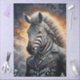 zebra armor decoupage, glowing zebra fantasy paper, surreal animal warrior design, mystical zebra art print, RHDesigns paper, mixed media fantasy collage, textured background craft paper, zebra with glowing mane, gothic animal decor, imaginative zebra decoupage