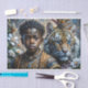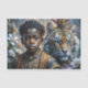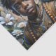 Um retrato régio que mescla o espírito guerreiro com o misticismo natural. A armadura ornamentada apresenta trabalhos em metal relevado e pedras preciosas, enquanto os lírios brancos e um majestoso tigre criam uma peça complementar poderosa.
