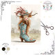This Highland cow brings rustic glam to the runway—nestled in a blue cowboy boot adorned with florals and intricate patterns. Her shaggy fur, curved horns, and feathered hat radiate western charm against a soft barnyard backdrop. Perfect for decoupage, mixed media, or furniture art that blends country roots with whimsical fashion
