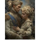 Step into a world of opulence and intrigue with this enchanting decoupage design, featuring an elegantly dressed couple in historical attire surrounded by dark florals and lush greenery. With gold-embroidered finery, a dramatic blue sash, and a cascade of lace and blossoms, this piece evokes 18th-century romance with a moody, baroque twist.