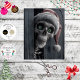 He’s festive. He’s fearless. He’s not quite living. This skeletal Santa peeks from behind a dark wooden wall with glowing green eyes and a grin that says he’s still checking that list—just from the other side. Dressed in full red-and-white holiday gear, his bony hand grips the edge like he’s ready to deliver gifts… or a ghostly giggle.