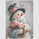 Papel De Seda Decoupage Snowman with Pink Roses