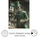St. Patrick’s Day decoupage paper, apothecary skeleton artwork, magical Irish décor design, green potion shop illustration, whimsical gothic St. Paddy’s Day sheet, fantasy skeleton character, emerald alchemy theme, mixed‑media holiday art, moody green decoupage design, mystical Irish storytelling décor.