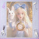 A little blonde girl that are the dreamer of adventures like Alice and her adventures. They are clutching golden pocket watches, a hint that time is of the essence. Is it time for Easter maybe? Perched on her shoulder is the ever-curious white rabbit, urging her to hurry and the other is waiting patiently. She is wearing a blue dress to add to her whimsical charm easter rabbit with girl, girl blue dress, clock time for Easter, whimsical girl rabbit, decoupage easter rabbit, girl blue dress, clock time for easter, whimsical girl, rabbit decoupage, papers furniture flippers, looking for time easter egg papers, furniture flippers, looking for time & Easter,