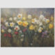 wildflower meadow decoupage paper design, textured daffodil floral art panel, spring bloom oil painting print, RHDesigns canvas craft supply, flower field decoupage paper image, misty green background art panel, impressionist wildflower craft design, vibrant daffodil lavender red blossoms, painterly floral mixed media panel, rustic springtime garden decor