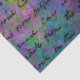 Este design vibrante mostra um lindo pavão com embelezamentos de ouro cercados por flores roxas sobre um fundo verde, roxo e rosa com escrevendo cursivo. Excelente para a desvinculação de arte, artesanatos de papel ou invólucro de presente. Certifique-se de checar a bolsa de presente!