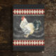 "Vintage Style Farmhouse Kitchen, Rooster Chalkboard Decoupage, Papel Tecido de Decoupage De Alto Peso Extra Grande." Um galo preto e branco foi pintado em aquarelas e combinado com caligrafia sutil de script de vintagem, de letras escritas à mão e várias efêmeras sobre um fundo antigo de quadro. Borda vermelha pesada e profunda com diamantes em tons termina o design pintado e graficamente desenhado pela artista e designer internacionalmente licenciada, Audrey Jeanne Roberts. Direitos autorais.