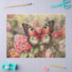 Linda desvinculação floral e borboleta com anotações manuscritas efêmeras em segundo plano.