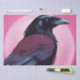 Desenho de um corvo preto sobre fundo rosa neon