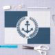 Design com temas náuticos, com decoração da soleira da âncora e da soleira do louro sobre fundo geométrico azul e branco
