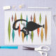 Ilustração colorida do estilo de Meio século abstrato com gato preto e decoração colorida de rombos em fundo branco