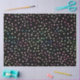 Uma magia feminina do Partido Disco holográfico confete pontos iridescentes trabalho de arte Negro, perfeita para eventos especiais, decorações de festas e celebrações únicas. Apresentando uma coleção de faíscas de brilho falso, bolinhas holográficas em cor rosa, roxo, menta, verde, azul, verde, cor pastel amarela, efeitos de gradiente metálico padrão de pontos de escova, sobre fundo preto.