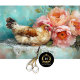 Traga elegância e encanto rústico do eterno para seus projetos com este lindamente detalhado papel de tecido de desvinculação da Páscoa. Este design apresenta uma galinha ouro-marrom que repousa sobre delicada renda branca, rodeada por coral e peônias de cor de pêssego, todas colocadas sobre um fundo de turquesa macio. Perfeito para eventos relacionados a fazendas, casamentos, embrulho de presentes ou projetos de artesanato, este trabalho de arte adiciona um toque luxuoso com seus intrincados detalhes florais e estética de safra. Ideal para qualquer pessoa que queira criar algo verdadeiramente único e memorável.