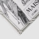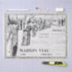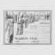 Anúncio francês de vintage para uma casa de moda mostrando filas e filas de senhoras elegantes se preparando para roupas novas. Moldura e texto francês. Excelente para desacoplamento.
