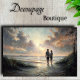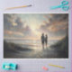 Esta cena costeira magistralmente renderizada captura um momento íntimo de contemplação no limiar entre a terra e o mar. A composição conduz o olhar através de um portal naturalista de gramíneas de dunas sopradas pelo vento, levando a duas figuras que compartilham um momento profundo contra uma paisagem marinha dramaticamente iluminada. A paleta é particularmente notável - apresentando dourados e âmbares luminosos que perfuram azuis ardósia sofisticados e cinzas de estanho, criando uma atmosfera etérea que parece suspender o próprio tempo.