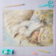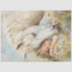 A imagem é uma pintura representando um momento sereno e tenro entre um cavalo branco e uma garotinha em um campo de flores silvestres. A cabeça do cavalo está suavemente descansando sobre a cabeça, criando uma sensação de calma e conexão entre os dois. O fundo é uma mistura de cores suaves e pastéis, melhorando a atmosfera pacífica da cena. A pessoa é parcialmente obscurecida pelo cavalo e pelas flores, acrescentando um elemento de mistério e focando-se na ligação entre o cavalo e a garotinha. Esta imagem é interessante e relevante porque captura a beleza da natureza e a relação suave entre humanos e animais. a garotinha e o cavalo branco, o campo das flores silvestres; o momento sereno, a ligação tenra; as cores pastéis, a atmosfera pacífica; o vínculo humano-animal, a beleza da natureza; a pintura artística, a cena calma.
