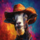 Este trabalho de arte cativante apresenta uma cabra pintada vibrantemente vestindo um charmoso chapéu estilo country. O pelo da cabra é feito com pinceladas detalhadas, mostrando um espectro de cores e texturas que dão vida ao retrato. Colocada contra uma abstrato de mistura de matizes quentes, a cabra olha diretamente para o espectador com uma expressão envolvente. A soma caprichosa do país que acrescenta um toque lúdico, fazer a esta peça uma encantadora fusão de imagens animais e moda humana. Perfeito para os entusiastas da arte e para aqueles que apreciam designs criativas e únicas, este trabalho de arte feito por RHDs de dois pintos é ideal para ser usado em sacos de tote de canvas, posters e decoração doméstica.