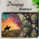 Transforme móveis e espaços comerciais com o nosso melhor papel de decoupage de joias ocidentais. Este elegante design apresenta conchos prateados ornamentados e uma silhueta de cavaleiro contra uma paisagem vibrante do pôr do sol. Este design cria um ponto focal elegante perfeito para fazendas, boutiques ocidentais ou espaços inspirados em equestres. COMBINAÇÕES DE COR: turquesa, magenta, prata, âmbar e pewter melhoram a beleza natural. RECURSOS design: embelezamentos metálicos, conchos florais e gradientes atmosféricos aprofundam seus projetos. PERFEITO PARA: salas de invasão, bares ocidentais, hotéis country, móveis de couro e bandejas decorativas. #DecoupageBoutique #SilverworkArt #WesternDecor #ConchoArt #RanchStyle