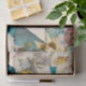 Este trabalho de arte apresenta uma paleta de cor suave com elementos florais vintage e um rosto no estilo de colagem mestiça e é uma obra adorável que iluminará qualquer espaço com seu sonho, abstrato e expressão artística.