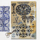 Papel de Tecido de Decoupage criativo e exclusivo usando uma matriz de texturas, padrões e ilustrações de vintage em paletas vibrantes, sem som e coloridas. Perfeito para desacoplamento, reserva de sucata e outros artesanatos de papel. O papel de tecidos em francês angustiado da Vintage apresenta motivos decorativos, figuras e padrões florais de ornamentado com tons de azul, um fundo texturizado de burlap, com dicas de tipografia vintage, e uma dica de local.