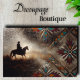 Transforme móveis e espaços comerciais com o nosso papel de dissociação sudoeste premium. Este design apresenta padrões geométricos de inspiração nativa e uma silhueta de cavalo contra um fundo de prata. Esta design cria um elegante ponto focal perfeito para casas do sudoeste, museus culturais ou espaços inspirados em caubói. COMBINAÇÕES DE COR: turquesa, burlôncio, âmbar, prata e cobre melhoram a beleza natural. RECURSOS design: texturas prateadas em relevo, inclusões geométricas e padrões simbólicos aprofundam seus projetos. PERFECT FOR: exibições de posto comercial, resornos do deserto, galerias nativas, paredes de demonstrativo e painéis decorativos. #DecoupageBoutique #NativeArt #SouthwestDecor #HeritageArt #LodgeStyle
