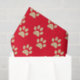 Este papel de tecido adorável para amantes de animais de estimação apresenta um padrão de impressão de pata de brilho dourado em um fundo vermelho. Faz um excelente saco de Natal ou de Natal.